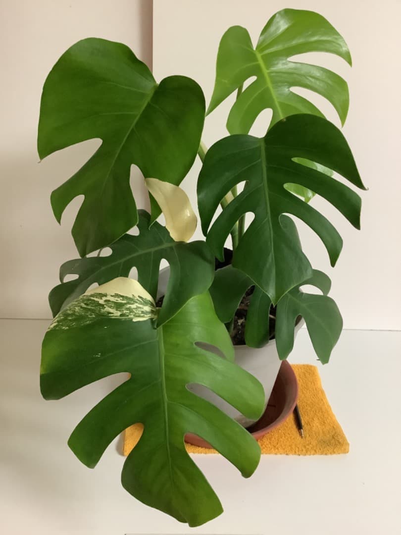 34モンステラ ボルギシアナ アルボ 白ホワイトタイガー斑入り 鉢モスポール付き